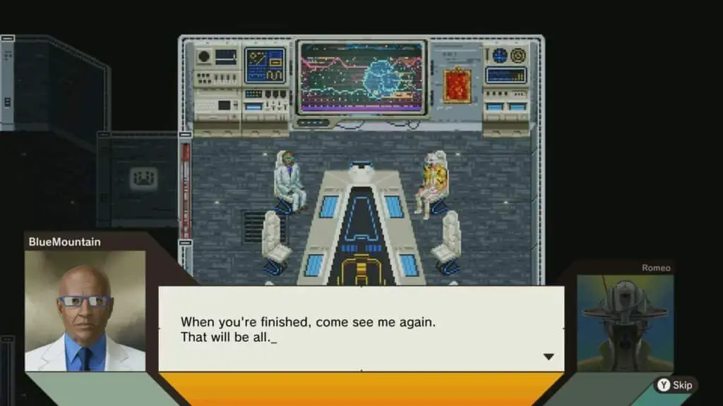 The Last Night is the base hub where you talk to NPCs, cultivate Bastards (zombies) to use on missions. You can upgrade pretty much all of Romeo’s abilities at The Last Night or at space pharmacies in missions.